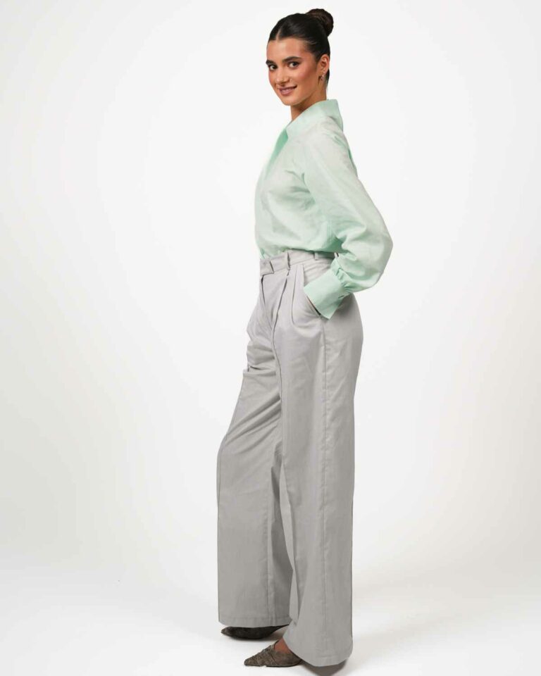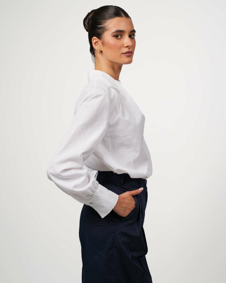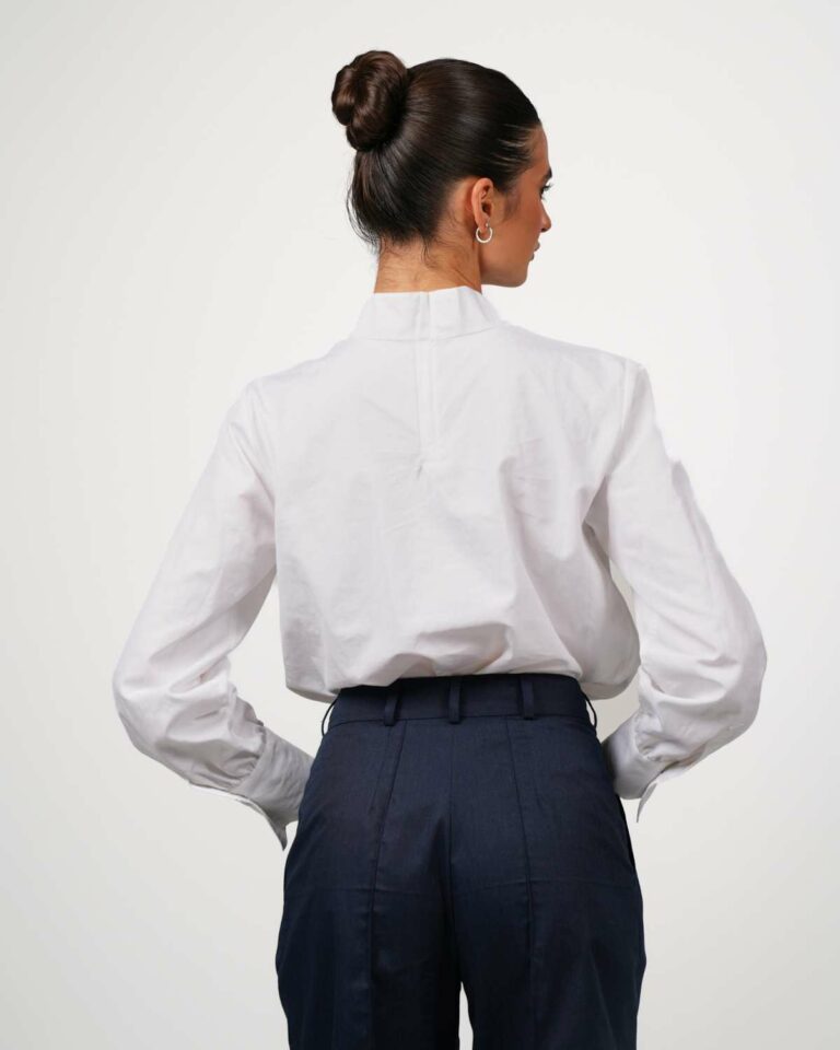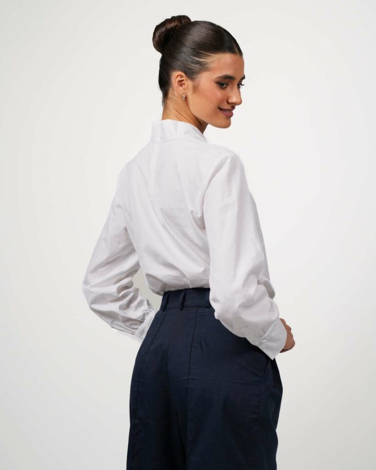 Besonders in der Farbe Weiß wirkt die Bluse mit Kragendetail klar, professionell und stilvoll – aber auch in Mocha Mousse oder Mint überzeugt sie mit sanfter Farbigkeit und Kombinationsfreude.
