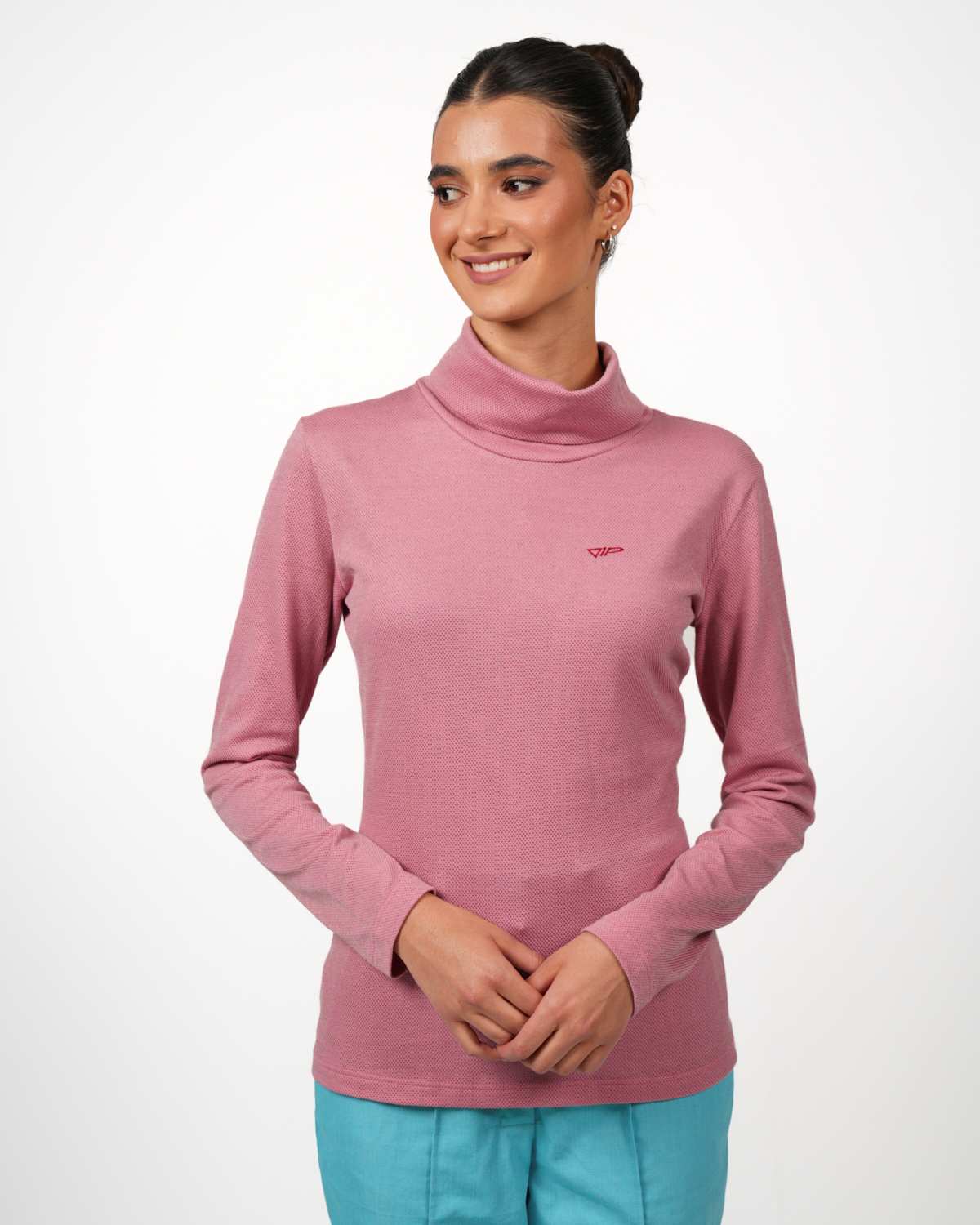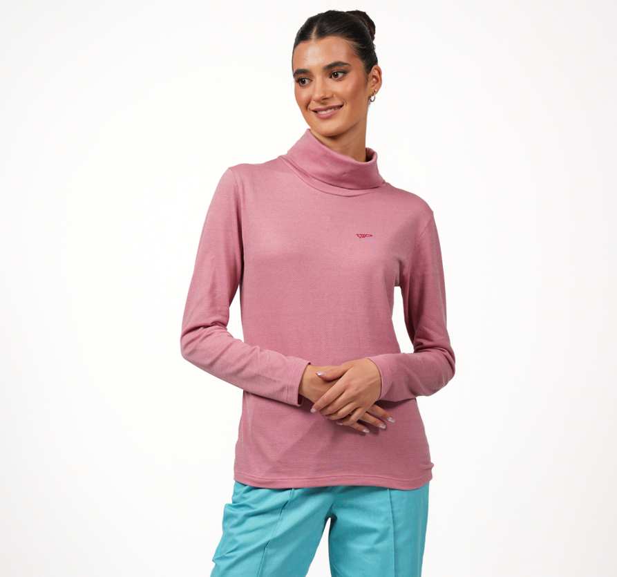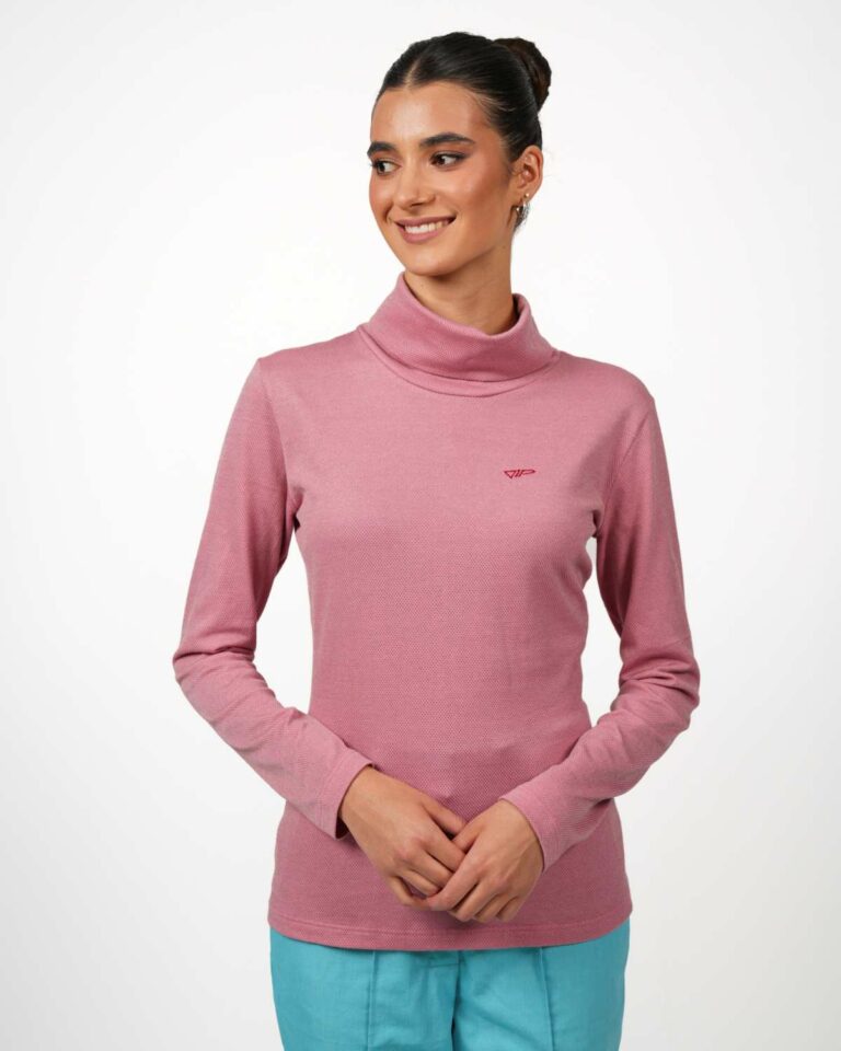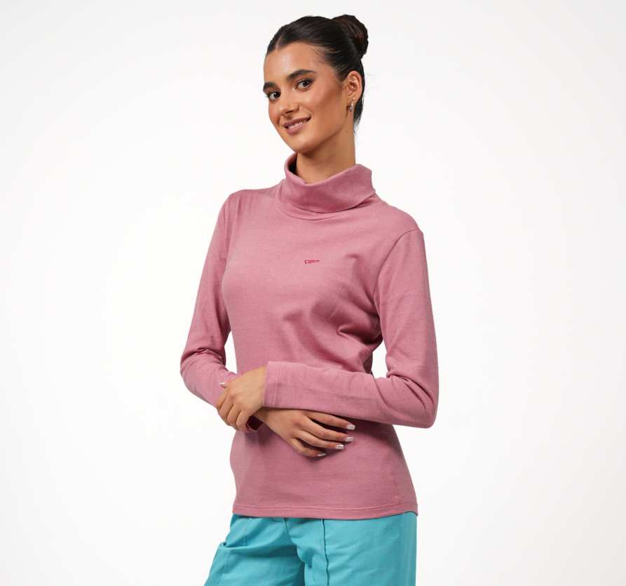 Rollkragen, der locker fällt oder zum Schutz der sensiblen Halsregion nach oben geklappt werden kann